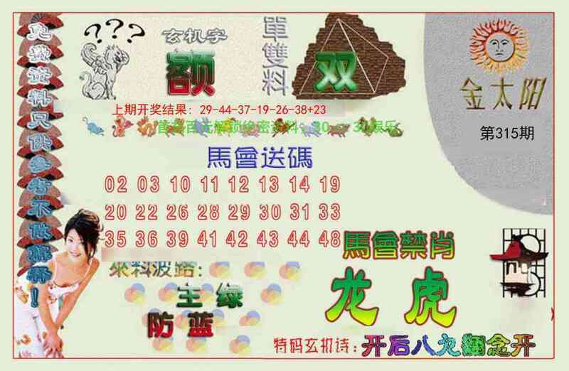 | 315期 | 龙肖 | 6尾 | 08合 | 虎04 |