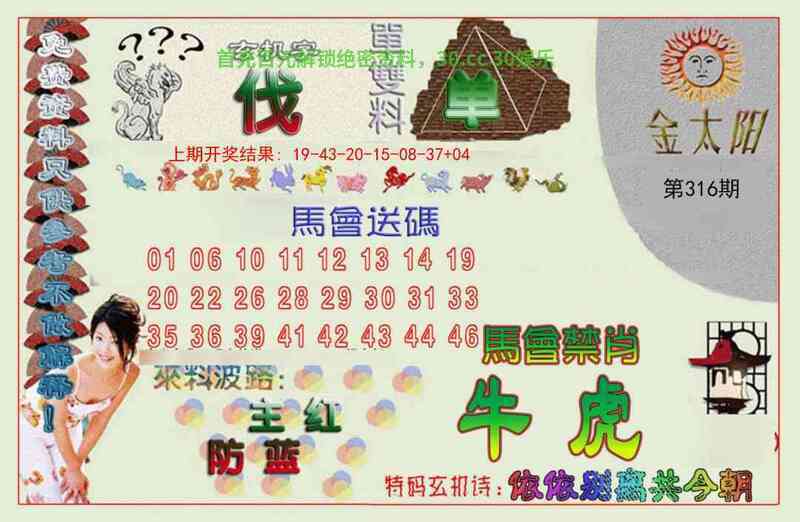 | 315期:三头中特【1头2头4头】开:虎04错 |